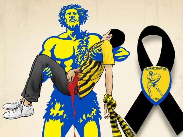 Η ομάδα του Αγρινίου, έβαλε τον Τίτορμο, τον μυθικός ήρωας που φιγουράρει στο έμβλημα της ομάδας, να κρατά στα χέρια του το δολοφονημένο παιδί που φορά τη φανέλα της αγαπημένης του ομάδας, και να θρηνεί κι αυτός όπως όλη χώρα.