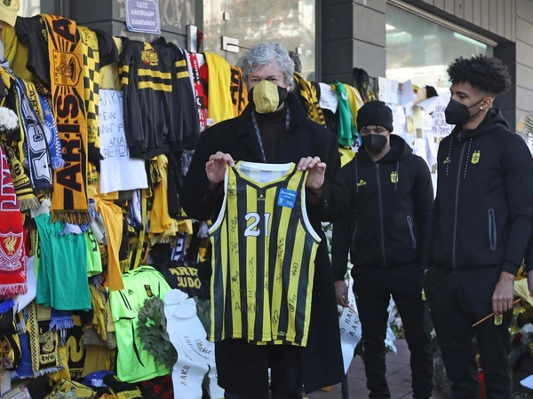 Ο πρόεδρος της ΚΑΕ, κ. Παπαγεωργίου, άφησε στο μνημείο που έχει στηθεί για τον Άλκη μία φανέλα του Ολιβιέ Χάνλαν υπογεγραμμένη από όλη την ομάδα, ενώ ο αρχηγός, Σταύρος Σχίζας, εναπόθεσε μία κιτρινόμαυρη ανθοδέσμη.