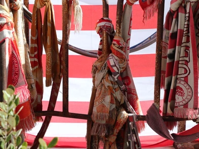 Μέρα γιορτής ήταν. Μια ηλιόλουστη μέρα. Άκουγες μόνο γέλια και φωνές. Συνθήματα. Κασκόλ. Σημαίες. Πανηγύρια. Και ξαφνικά ο χάρος βγήκε μπροστά τους. «Τι ομάδα είστε» τους ρώτησε. Κι εκείνοι με όση δύναμη είχαν του φώναξαν «Ολυμπιακός» και ξεχύθηκαν προς τη σιδερένια πόρτα με όση ορμή τους έδιναν τα νιάτα και η μεγάλη τους αγάπη για το κόκκινο και το άσπρο. Και εκείνος τους θέρισε. Πήρε το δρεπάνι του και τους θέρισε. 21 ψυχές μέσα σε ελάχιστα λεπτά. 21 μάνες που δεν είδαν τα βλαστάρια τους να μπαίνουν ξανά από την πόρτα. 21 πατεράδες που λύγισαν, που τσάκισαν.
