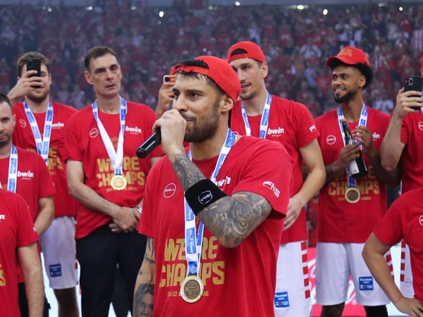 Με τα μεγάφωνα να παίζουν «από τους πρόποδες της γης, κατακτητές της κορυφής, με τη σημαία μας ψηλά», ένας ένας οι πρωταγωνιστές του πρωταθλητή Ελλάδας Ολυμπιακού μπήκαν στο παρκέ του ΣΕΦ, λίγα μόλις λεπτά μετά τη νίκη με 93-74 και το 3-0 επί του Παναθηναϊκού, για τη στέψη! Πρώτοι πέρασαν οι ιδιοκτήτες της ΚΑΕ, Παναγιώτης και Γιώργος Αγγελόπουλος φορώντας κόκκινα μπλουζάκια με το όνομα του Πρίντεζη και το νούμερο του αρχηγού του Ολυμπιακού, δηλαδή το Νο 15.