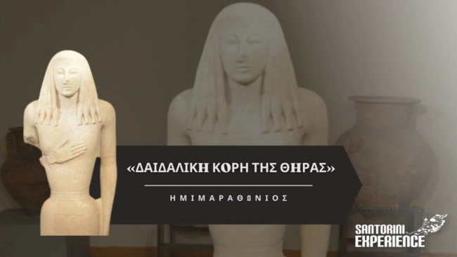 Επίσης, η Αντιδήμαρχος Θήρας και Υπεύθυνη Πολιτισμού κα. Σοφία Κίτσου δήλωσε στο πλαίσιο της συν. Τύπου: «Η μαρμάρινη Δαιδαλική Κόρη της Θήρας, είναι ένα μοναδικό αρχαιολογικό εύρημα υπερφυσικού μεγέθους, που χρονολογείται στα 640 π.Χ. και η οποία βρέθηκε διατηρημένη σε εξαιρετική κατάσταση στη θέση Σελλάδα της Αρχαίας Θήρας. Το εύρημα αυτό ύψους 2,30μ. και βάρους 750 κιλών, πρόκειται να εκτεθεί στον αίθριο χώρο του Αρχαιολογικού Μουσείου της Θήρας και θα δοθεί για πρώτη φορά η δυνατότητα στο παγκόσμιο κοινό να το δει. Χαίρομαι ιδιαίτερα που η ActiveMedia Group μοιράστηκε μαζί μας το όραμα αυτό και συναποφασίσαμε να δοθεί το όνομα της Δαιδαλικής Κόρης στον Ημιμαραθώνιο. Φέτος θα έχετε έναν ακόμα λόγο συμμετοχής σας στο Santorini Experience για να δείτε από κοντά και τη Δαιδαλική Κόρη».