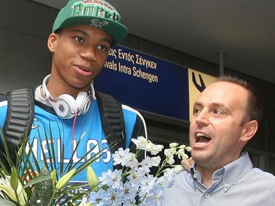 Ο Γιώργος Δημητρόπουλος, ο οποίος συνεργαζόταν εκείνη την περίοδο με τον Αλεξ Σαράτση, το 2012 είχε λάβει ένα μέιλ από έναν μάνατζερ από το Ισραήλ. Ο Γιαρόν Αρμπελ, που εδρεύει στο Τελ Αβίβ και εργάζεται για τους Νιου Ορλεανς Χόρνετς, μόλις είχε δει κάποια βίντεο στο Youtube για τον Αντετοκούνμπο και έστειλε το μέιλ στον Δημητρόπουλο, για έναν 17χρονο, τότε, με μακριά χέρια, που έπαιζε πλέι μέικερ. Τον ρώτησε αν τον γνωρίζει κανείς και η απάντηση του Δημητρόπουλου ήταν σαφής: «όχι». Μόλις εντοπίστηκε το ταλέντο του, οι Πάνου και Σαράτσης βρέθηκαν από την πρώτη στιγμή δίπλα του.