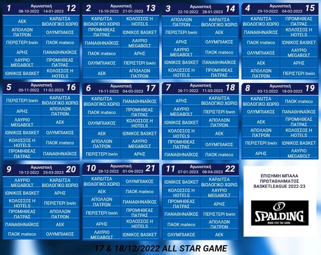 Το πρώτο Σαββατοκύριακο του Δεκεμβρίου θα αναμετρηθούν για πρώτη φορά στη φετινή Basket League ο Ολυμπιακός και ο Παναθηναϊκός καθώς η κληρωτίδα τους έφερε αντιμέτωπους, στο ΣΕΦ την 8η αγωνιστική. Αντίστοιχα οι «αιώνιοι» θα παίξουν στο ΟΑΚΑ στις 18 Μαρτίου. Το πρώτο τζάμπολ γι ατο νέο πρωτάθλημα θα γίνει το Σάββατο 8 Οκτωβρίου με την κανονική περίοδο να ολοκληρώνεται στις 8 Απριλίου και εν συνεχεία να ξεκινούν τα πλέι οφ. Στις 17 και 18 Δεκεμβρίου θα υπάρξει διακοπή λόγω του All Star Game που επιστρέφει και πάλι στο καλεντάρι.