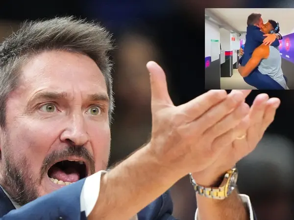 Αναμφίβολα πρόκειται για τη νο1 φυσιογνωμία του Eurobasket 2022! Ο προπονητής της εθνικής Ιταλίας, Τζανμάρκο Ποτσέκο είναι ξεκάθαρα... τρελός και το επιβεβαίωσε για ακόμα μια φορά αφού μετά τη νίκη της ομάδας του κόντρα στη Σερβία το πανηγύρισε έξαλλα. Τόσο έξαλλα, που όταν είδε τον Γιάννη Αντετοκούνμπο στον διάδρομο προς τα αποδυτήρια, πήρε φόρα, πήδηξε πάνω του και τον αγκάλιασε σφιχτά!