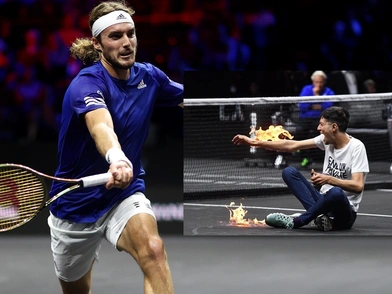 Ενα απίστευτο περιστατικό σημειώθηκε κατά τη διάρκεια αγώνα του Ελληνα πρωταθλητή του τένις, Στέφανου Τσιτσιπά με τον Ντιέγκο Σβάρτσμαν για το Laver Cup, το οποίο διεξάγεται στο Λονδίνο. Συγκεκριμένα, ενώ ήταν σε εξέλιξη η αναμέτρηση, ένας νεαρός ακτιβιστής εισέβαλε στο court και έβαλε... φωτιά στο χέρι του, προκαλώντας τη διακοπή του αγώνα.