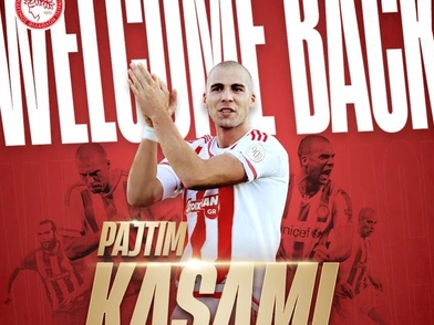 «Η ΠΑΕ Ολυμπιακός ανακοινώνει την απόκτηση του Παϊτίμ Κασάμι. Ο Ελβετός μέσος, γεννημένος στις 2 Ιουνίου 1992, επιστρέφει στους «ερυθρόλευκους» με τους οποίους τη διετία 2014-2016 κατέκτησε δύο πρωταθλήματα και ένα κύπελλο, μετρώντας 66 συμμετοχές και εννέα γκολ. Ο 30χρονος αγωνιζόταν από το 2020 στη Βασιλεία, με τη φανέλα της οποίας σε 79 παιχνίδια πέτυχε 19 γκολ και έδωσε εννέα ασίστ.
