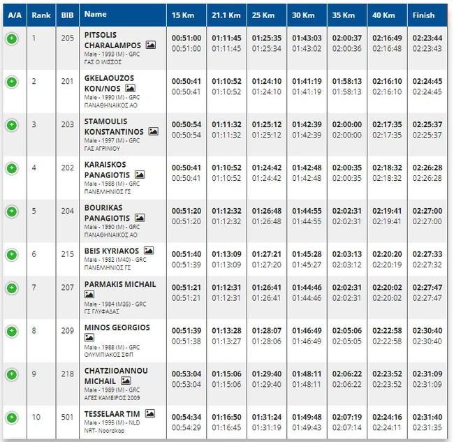 Με χρόνο 2:23:44 ο Χαράλαμπος Πιτσόλης είναι ο μεγάλος νικητής του 39ου κλασικού Μαραθωνίου της Αθήνας, καθώς προσπέρασε στα τελευταία μέτρα τον Κωνσταντίνο Γκελαούζο που τελικά έκοψε το νήμα σε 2:24:45. Τρίτος ο Κωνσταντίνος Σταμούλης με χρόνο 2:25:37. Και οι πρώτη εννέα αθλητές που τερμάτισαν είναι Ελληνες, με τον Ολλανδό Τιμ Τέσσελααρ να συμπληρώνει την πρώτη 10άδα των νικητών.