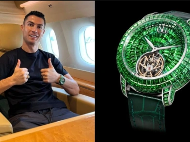 Ο Πορτογάλος σταρ δείχνει να απολαμβάνει τη νέα του ζωή στη Σαουδική Αραβία. Μάλιστα, ο φωτογραφικός φακός τον έχει απαθανατίσει τις τελευταίες ημέρες με ένα πανάκριβο ρολόι στον καρπό του χεριού του, το οποίο το πήρε δώρο στον εαυτό του. Πρόκειται για ένα συγκλονιστικό Jacob & Co Caviar Tourbillon Tsavorites σε πράσινο χρώμα, με την τιμή του να ξεπερνά τα 710.000 ευρώ! Το συγκεκριμένο ρολόι αποτελεί την επιτομή του στιλ. Επίσημα γνωστό ως Caviar Tourbillon, είναι κατασκευασμένο από χρυσό και διακοσμημένο με 388 τσαβορίτες, ενώ δεκάδες ακόμη πετράδια κοσμούν το καντράν του.
