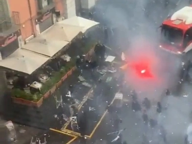 Μάλιστα σύμφωνα με τα ιταλικά Μέσα οι Γερμανοί... συνασπίστηκαν με τους οπαδούς της Αταλάντα που ταξίδεψαν από τον Βορρά ενώ οι φίλοι της Νάπολι είχαν στο πλευρό τους ultras του Ερυθρού Αστέρα. Οι Αρχές το βράδυ της Τετάρτης (15/3) είχαν βάλει στόχο να απομακρύνουν το συντομότερο δυνατό τους υποστηρικτές των Αετών από την πόλη. Οι οπαδοί των Ναπολιτάνων προσπάθησαν να επιτεθούν στο ξενοδοχείο των φίλων της Άιντραχτ, το οποίο άμεσα περικυκλώθηκε από δυνάμεις της αστυνομίας.