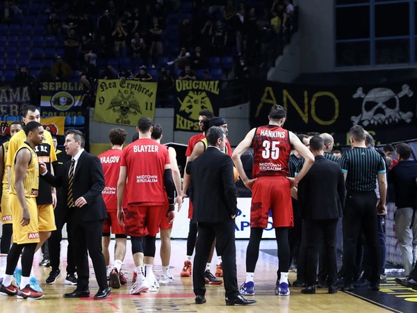 Οι παίκτες και το σταφ της ΑΕΚ δεν κοιμήθηκαν μετά το συμβάν, με την αναμέτρηση να είναι προγραμματισμένη για το απόγευμα της Τετάρτης. Η «κιτρινόμαυρη» ΚΑΕ έχει αποφασίσει να προχωρήσει σε καταγγελία και να ζητήσει το υλικό από τις κάμερες ασφαλείας για να το στείλει στο BCL. Θυμίζουμε πως η ΑΕΚ είδε την έδρα της να τιμωρείται για όλη την επόμενη σεζόν της διοργάνωσης, μαζί με χρηματικό πρόστιμο, ένεκα των επεισοδίων που έλαβαν χώρα στο Game 2 της σειράς.