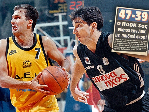 Κι όμως παρότι οι δύο δικέφαλοι είναι δυνατές ομάδες, εκείνη την Κυριακή, 27 Ιανουαρίου του 1998, θα έγραφαν ιστορία για τους λάθους λόγους. Ο ΠΑΟΚ με κορυφαίο τον Πέτζα θα πάρει τη νίκη και το προβάδισμα για την 3η θέση. Μόνο που στο τέλος του αγώνα το ταμπλό γράφει 47-39! Ένα σκορ που θα μπορούσε να είναι ημιχρόνου, ήταν το τελικό.