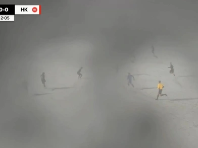 Χαρακτηριστικά μάλιστα είναι τα τηλεοπτικά πλάνα, που δείχνουν το γήπεδο σαν «τοπίο στην ομίχλη», με το χιόνι να έχει σκεπάσει τον αγωνιστικό χώρο.