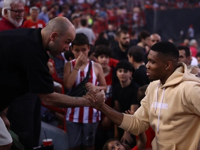Ο Γιάννης Αντετοκούνμπο, ένας από τους αθλητές που έχουν παραδεχθεί πως τους έχει εμπνεύσει ο Βασίλης Σπανούλης, συνεχάρη τον αρχηγό του Ολυμπιακού της Εθνικής Ομάδας για τη σημερινή μεγάλη βραδιά του γκαρντ.