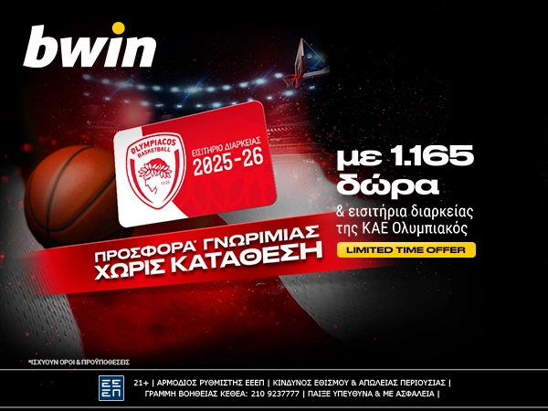 Η αγωνιστική δράση ξεκίνησε και στην bwin το ζεις με 1.165 δώρα και διαρκείας για την ΚΑΕ Ολυμπιακός, στην αποκλειστική προσφορά* γνωριμίας χωρίς κατάθεση.