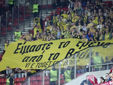 Οι φίλαθλοι της νορβηγικής ομάδας, που ως επί το πλείστον φορούσαν τις κίτρινες φανέλες της ομάδας τους, πήραν θέση στην εξέδρα και φώναζαν συνθήματα υπέρ του σκανδιναβικού συλλόγου.