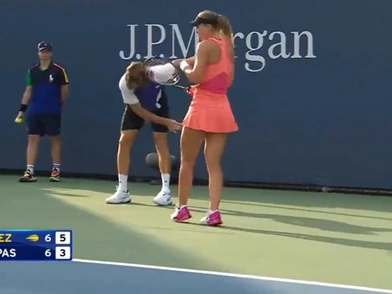 Ο Έλληνας τενίστας προσπάθησε να σπάσει τη ρακέτα του τρομάζοντας την Ισπανίδα τενίστρια.