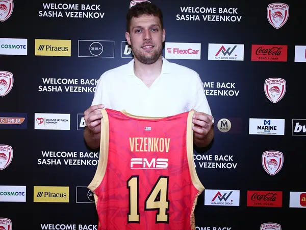 Μετά από έναν χρόνο απουσίας ο Σάσα Βεζένκοβ επέστρεψε στον Ολυμπιακό και παρουσιάστηκε επίσημα από την ερυθρόλευκη ΚΑΕ, εν μέσω αποθέωσης από οπαδούς της ομάδας που υποδέχθηκαν τον 28χρονο φόργουορντ στο ΣΕΦ.