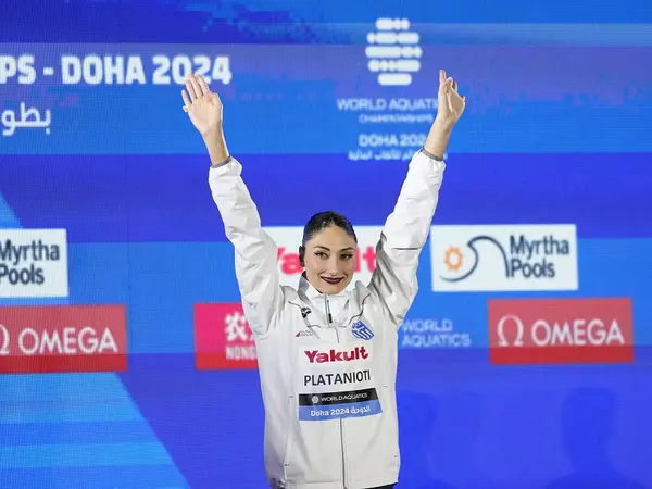 Με το χρυσό μετάλλιο γύρω από τον λαιμό της και με απόλυτη ηρεμία, αφού πέτυχε τον απόλυτο στόχο της, η Ευαγγελία Πλατανιώτη εμφανίστηκε στη μεικτή ζώνη ως Παγκόσμια πρωταθλήτρια στο τεχνικό σόλο, στο Παγκόσμιο πρωτάθλημα υγρού στίβου στη Ντόχα.