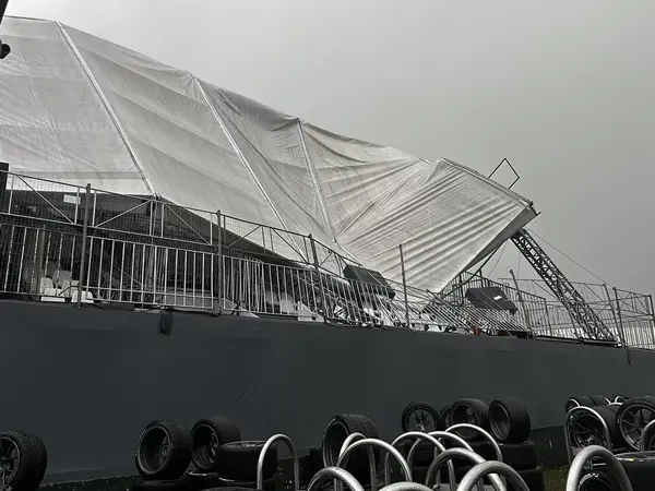 Σε βίντεο που ανέβηκαν στα social media, φαίνονται οι θεατές να προσπαθούν να απομακρυνθούν γρήγορα από την πίστα, εν μέσω θυελλωδών ανέμων.