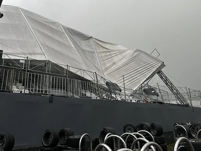Μάλιστα κατέρρευσε ένα μέρος οροφής σε μία εξέδρα, θέτοντας σε κίνδυνο τους θεατές. Μέχρι στιγμής πάντως δεν υπάρχουν αναφορές για τραυματισμούς.