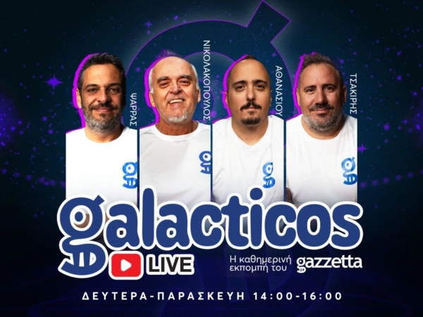 Για ακόμη μία μέρα η εκπομπή «Galacticos», που προβάλλεται στο Youtube του Gazzetta, θα σας κρατήσει συντροφιά 14:00-16:00. Οι Κώστας Ψάρρας, Κώστας Νικολακόπουλος, Γιώργος Τσακίρης και Νίκος Αθανασίου μεταφέρουν τα τελευταία νέα του Ολυμπιακού, του Παναθηναϊκού και της ΑΕΚ και τα συζητούν, απαντώντας και στα μηνύματά σας.