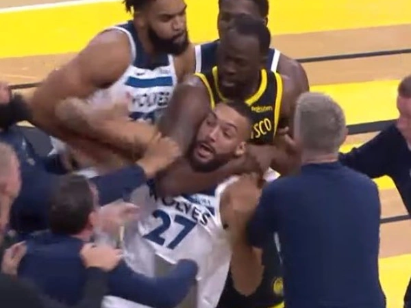Λίγα λεπτά, 1:43, μετά από το τζάμπολ του αγώνα Κλέι Τόμπσον και Τζέιντεν ΜακΝτάνιελς ξεκίνησαν έναν απίστευτο καυγά στο κέντρο του γηπέδου μετά από ένα μαρκάρισμα, ωστόσο τα χειρότερα ήρθα λίγα δευτερόλεπτα μετά. Ο Ρούντι Γκομπέρ φαίνεται πως προσπαθεί να τους χωρίσει, ωστόσο ο Ντρέιμοντ Γκριν άρπαξε τον Γάλλο σέντερ με κεφαλοκλείδωμα και χρειάστηκε πολυπληθής παρέμβαση ώστε να τον αφήσει.