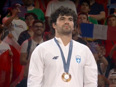 Ο Θοδωρής Τσελίδης, μέχρι πρόσφατα πρωταθλητής Ευρώπης στο άθλημα, δεν φάνηκε να το πιστεύει όταν ανέβηκε στο βάθρο, για να παραλάβει το χάλκινο μετάλλιο, που με τόσο κόπο κατέκτησε στους Ολυμπιακούς Αγώνες του Παρισιού.