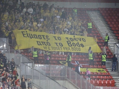 Αίσθηση προκάλεσε το πανό των φιλάθλων της Μπόντο Γκλιμτ στο «Καραϊσκάκης» στον αγώνα απέναντι στον Ολυμπιακό για το Europa League, το οποίο μάλλον ως «ατυχής έμπνευση» θα μπορούσε να χαρακτηριστεί.