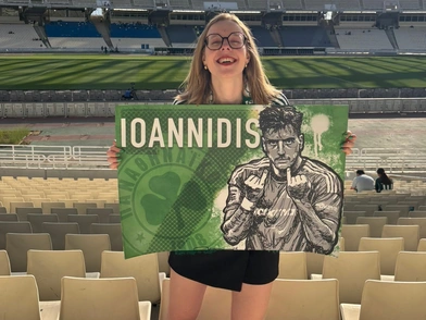 «Πέταξα από το Βέλγιο για να δω τον Παναθηναϊκό και έφερα ένα πλακάτ μόνο για τον Ιωαννίδη... μόνο και μόνο για να μάθω πως είναι τραυματίας και πιθανόν να μην είναι καν στο γήπεδο. Συγχρονισμός; άψογος» έγραψε η οπαδός του Παναθηναϊκού.