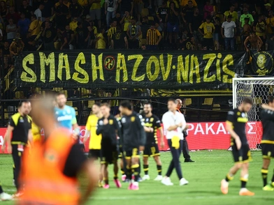 Συγκεκριμένα, διαμαρτύτερα για το πανό που έγραψε «Συντρίψτε τους Ναζί το Αζόφ». Η Ομοσπονδία Ποδοσφαίρου της Ουκρανίας θέτει το ζήτημα στην UEFA λίγο πριν τον σημερινό επαναληπτικό αγώνα με την Ντιναμό Κιέβου για το Europa Conference League.