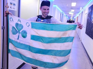 Όπως αναφέρει ο επίσημος λογαριασμός του Παναθηναϊκού στα social media, ο ομογενής κρατούσε σημαία του Παναθηναϊκού, την οποία ο πατέρας του, Άλκης, έφερε μαζί του στη Μελβούρνη το 1971, όταν μετανάστευσε εκεί.