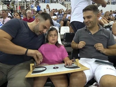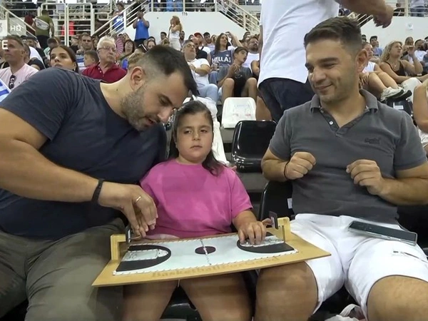 Συγκινητικές στιγμές εκτυλίχθηκαν στο σημερινό (16/7) φιλικό της Εθνικής Ομάδας Μπάσκετ με το Πουέρτο Ρίκο στη Θεσσαλονίκη, καθώς ένα κορίτσι με προβλήματα όρασης κατάφερε να απολαύσει τον αγώνα.