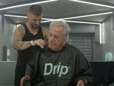 «Λοιπόν, μάγκες μου, ήρθε η μεγάλη ώρα. Ήρθα να κουρευτώ. Έχω να κουρευτώ από φαντάρος, δεν πάω καλά. Κάθε ψαλιδιά είναι μαχαιριά, δεν χτενίζονται, 50 χρόνια είναι μαχαιριά» ακούγεται να λέει ο Τάκης Τσουκαλάς, όσο «προειδοποιεί» τον κουρέα του.
