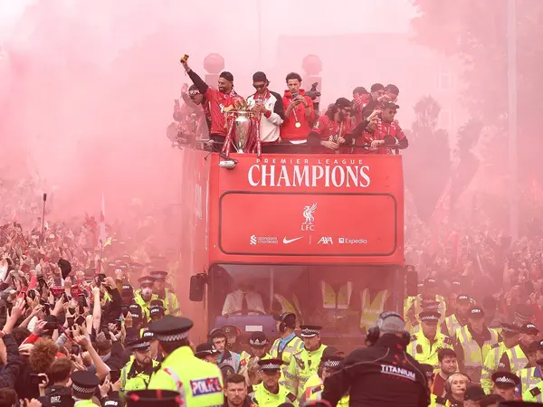 Οι ποδοσφαιριστές της Λίβερπουλ, σε μία γιορτή έκστασης, έλουζαν με σαμπάνια τον κόσμο που κατέκλυσε τους δρόμους της πόλης. Το Λίβερπουλ έγινε κυριολεκτικά κόκκινο, με χιλιάδες καπνογόνα και πανό, την ίδια στιγμή που η ιαχή «Λίβερπουλ» δονούσε την ατμόσφαιρα.