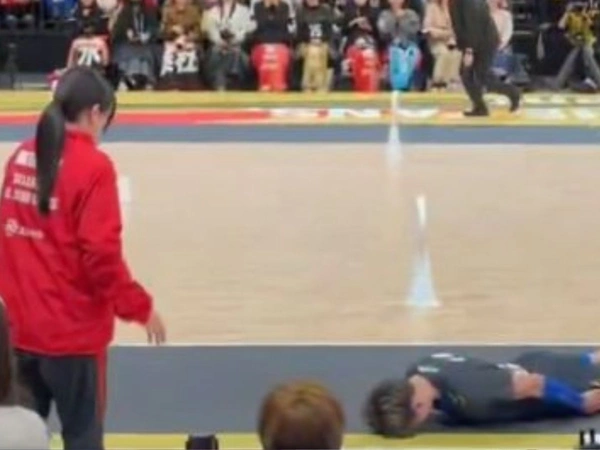 Κι εκεί που όλοι περίμεναν μια απλή συγγνώμη, ο Νισίντα αποφάσισε να δώσει ρεσιτάλ ιαπωνικής ευγένειας: πήρε φόρα, έκανε ένα εντυπωσιακό «μακροβούτι» στο παρκέ και σύρθηκε μέχρι τα πόδια της διαιτήτριας, ξαπλωμένος μπρούμυτα με τα χέρια ανοιχτά σαν να ζητούσε άφεση αμαρτιών.