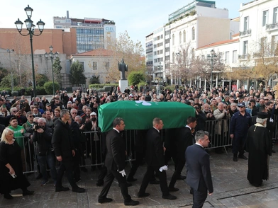 Το φέρετρό του ήταν σκεπασμένο με την πράσινη σημαία του Παναθηναϊκού και από τα μεγάφωνα έπαιζε ο ύμνος της ομάδας που υπηρέτησε και αγάπησε.