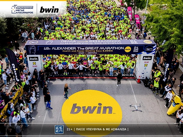 H Θεσσαλονίκη είναι έτοιμη να υποδεχθεί το σημαντικότερο αθλητικό και πολιτιστικό θεσμό της πόλης, το γεγονός που στρέφει πάνω του τα βλέμματα δρομέων και όχι μόνο. H bwin για 7η διαδοχική χρονιά περήφανα στηρίζει τον Διεθνή Μαραθώνιο «Μέγας Αλέξανδρος» - bwin, παραμένοντας Ονομαστικός Χορηγός και υπόσχεται να εκτοξεύσει στις 6 Απριλίου την εμπειρία στα ύψη.