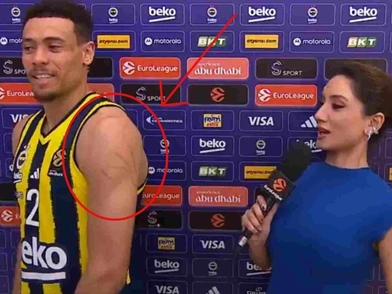 Μετά το τέλος της αναμέτρησης μίλησε στην flash interview στη δημοσιογράφο Ντενίζ Ακσόι και στάθηκε στο παιχνίδι των Πειραιωτών, δείχνοντας τις γρατζουνιές του.