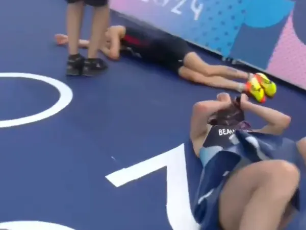 Μετά τον τερματισμό στο τρίαθλο, οι αθλήτριες κατέρρευσαν και ξάπλωσαν, μη μπορώντας να συγκρατήσουν τα δάκρυά τους.