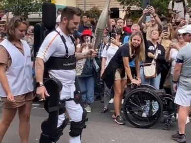 Η ανάρτηση που έγινε viral συνοδεύεται από τη λεζάντα: «Ο Kevin Piette, παραπληγικός από ένα ατύχημα, έγραψε ιστορία σήμερα μεταφέροντας την ολυμπιακή φλόγα με τον εξωσκελετό του!».