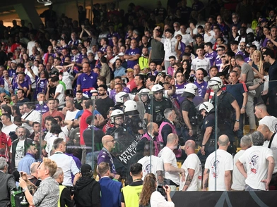 Ένταση επικράτησε στο τέλος του πρώτου ημιχρόνου του αγώνα Ολυμπιακός - Φιορεντίνα, καθώς στην εξέδρα των φιλάθλων των Ιταλών τα πνεύματα άναψαν.