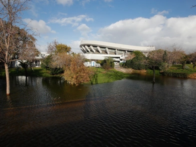 Σύμφωνα με το gazzetta.gr, στο παρκέ του Σταδίου Ειρήνης και Φιλίας μετά τη νεροποντή της Πέμπτης (2/10) τοποθετήθηκαν κουβάδες και νάιλον.