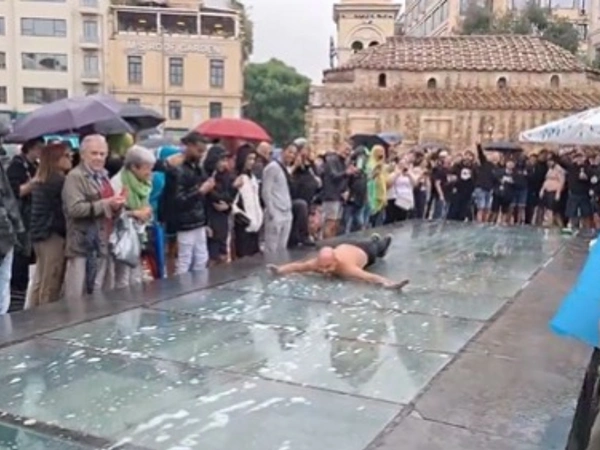 Έξω από τον σταθμό του Μετρό στο Μοναστηράκι, οι Ολλανδοί οπαδοί μετέτρεψαν τον βρεγμένο δρόμο σε... νεροτσουλήθρα, διασκεδάζοντας με την ψυχή τους και τραβώντας την προσοχή των περαστικών, οι οποίοι δεν δίστασαν να απαθανατίσουν τις στιγμές με τα κινητά τους.