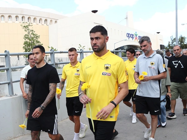 Φωτογραφίες από τη στιγμή που παίκτες της ΑΕΚ αφήνουν ένα λουλούδι: