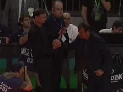 Κατά την καθιερωμένη χειραψία παικτών και προνητών, πριν το τζάμπολ του αγώνα, ο Τούρκος προπονητής χαιρέτησε βιαστικά τον Έλληνα τεχνικό και έφυγε, δίχως να πάρει το λαβαράκι του Ολυμπιακού που πήγε να του δώσει ο αντίπαλος προπονητής.
