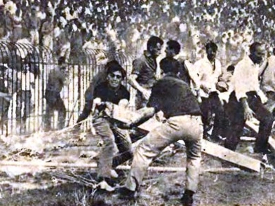 Ανάμεσα στους εξαγριωμένους οπαδούς και τους παίκτες υπήρχε μόνο το κιγκλίδωμα, το οποίο μέσα σε λίγα λεπτά κατέρρευσε.