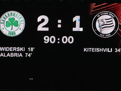 Το υπέροχο γκολ του Ντάβιντε Καλάμπρια στο 74’ χάρισε στον Παναθηναϊκό το μεγάλο «τρίποντο». Ο Σφιντέρσκι άνοιξε το σκορ στο 18’, ενώ η αυστριακή ομάδα ισοφάρισε με ένα τρομερό γκολ του Κιτεϊσβίλι στο 34’.