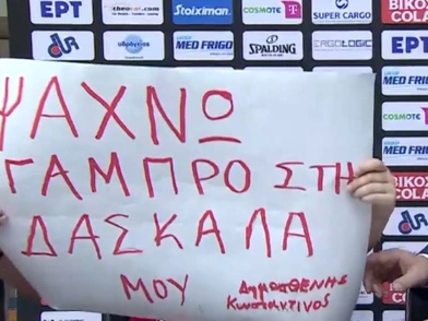 Στο παιχνίδι Προμηθέας – Ολυμπιακός, η εξέδρα είχε έναν ξεχωριστό πρωταγωνιστή: τον μικρό Δημοσθένη από την Κεφαλονιά. Με το πλακάτ του στο χέρι, έγραψε το πιο απρόσμενο μήνυμα της βραδιάς: «Ψάχνω γαμπρό για τη δασκάλα μου!»