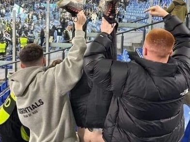 Φίλοι της Σέλτικ που βρέθηκαν στις κερκίδες του «Ολίμπικο» βρήκαν έναν άκρως χιουμοριστικό τρόπο να πικάρουν τους αντιπάλους τους, κρατώντας ανάποδα έναν συνοπαδό τους. Η εικόνα παραπέμπει προφανώς στον νεκρό δικτάτορα Μπενίτο Μουσολίνι, το πτώμα του οποίου κρεμάστηκε ανάποδα σε κεντρική πλατεία του Μιλάνο τον Απρίλιο του 1945.