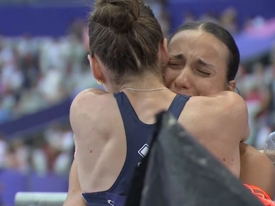 Η Κύπρια αθλήτρια περίμενε μέχρι να μάθει αν θα προκριθεί η Εμμανουηλίδου στον ημιτελικό των 200 μέτρων, και μόλις το έμαθε την πήρε μια θερμή αγκαλιά για να την συγχαρεί και η Ελληνίδα αθλήτρια ξέσπασε σε κλάματα.
